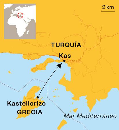 Cruzó los siete kilómetros que hay entre la isla griega de Meis y la localidad turca de Kas en dos horas, nadando en aguas cristalinas en las que se podían ver tortugas