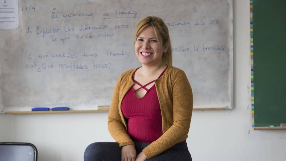 Luli Arias tiene 32 años, es trans y docente de Salud, Género y Técnicas de Estudios en el bachillerato. En el recreo, describe parte de la dura realidad de los estudiantes: "El 80% de los que son trans se dedican a la prostitución y más del 70% manifiestan que desean de trabajar de otra cosa". La docente subraya: "Nosotras entendemos la vida compleja que llevan y qué contención necesitan. Las alumnas se ven reflejadas en los docentes, y cuando algunas dicen `el día de mañana yo también quiero ser maestra o abogada´, me emociono mucho".