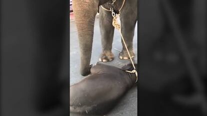 Un vídeo muestra la dificultad para incorporarse de una cría de elefante en Tailandia