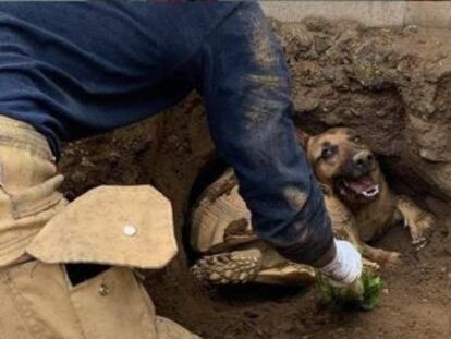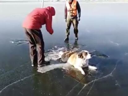 Los oficiales tardaron cuatro horas en rescatar al animal en una ciudad al noroeste de China