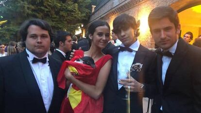 Un cerdo vietnamita envuelto en una bandera de España, el polémico regalo de Victoria Marichalar