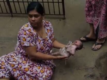 El recién nacido se encontraba cubierto de sangre y con el cordón umbilical envuelto