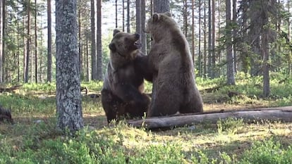 El fotógrafo Tero Pylkkanen grabó un vídeo de una pelea entre dos osos pardos en un bosque de Finlandia. Estaba acampando con su familia en un escondite para la observación de animales en la localidad de Kainuu, una zona fronteriza con Rusia, cuando los animales comenzaron a enfrentarse a pocos metros del refugio. Según ha afirmado Pylkkanen, antes de que estallara la pelea los osos se estuvieron siguiendo cerca de dos horas. El fotógrafo compartió las imágenes en su cuenta de YouTube el pasado 29 de junio que se han hecho virales en redes sociales.