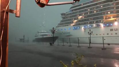 Un barco de la compañía 'Costa Cruceros' estuvo a punto de chocar este domingo contra un yate, otros buques del servicio de transporte público y una cafetería cercana al puerto, en la cuenca de San Marco (Venecia, Italia). Según han informado medios locales, el crucero perdió el control mientras una tormenta de granizo azotaba la cuidad. El capitán de la nave, conocida como 'Costa Deliciosa', hizo sonar las sirenas de emergencia y pudo evitar el accidente, aunque con gran dificultad.