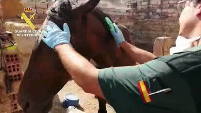 Los agentes del Seprona le exigieron la documentación relativa al traslado del equino, momento en el que el joven se desdijo y afirmó que el caballo estaba en un lugar próximo, adonde se trasladaron para comprobar su estado. Del examen realizado se determinó que el animal se encontraba en muy malas condiciones y con claros síntomas de inanición. Por todo ello, el joven fue detenida por tres presuntos delitos de maltrato animal y se le interpusieron 21 infracciones administrativas a la ley de protección animal y a la de residuos y suelos contaminados.