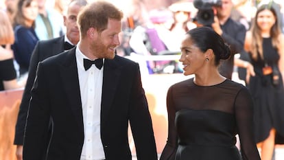 El pasado domingo asistió en Londres al estreno de la nueva versión de El rey León y debió sentirse confortada por los suyos, ese mundo del espectáculo que se volcó en arroparla. Beyoncé la abrazó cariñosamente, Elton John no podía sonreír más a la pareja mientras estrechaba sus manos y Pharrell Williams, –sí, el cantante que convirtió en hit la palabra Happy– volvió a conseguir un titular para los tabloides. Porque cuando le llegó el turno de saludar a los duques de Sussex, sus poco protocolarios pantalones bermuda combinados con chaqueta y pajarita, dieron para distendir la situación y para que el cantante se atreviera a felicitarles por su relación diciéndoles que en el mundo de hoy es difícil encontrar a dos personas tan enamoradas y con una relación afianzada. Las cámaras omnipresentes no se perdieron la respuesta de Markle: "No lo ponen fácil".