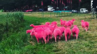 Críticas a un festival británico de música por teñir de rosa a varias ovejas