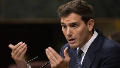 El líder de Ciudadanos vuelve a articular su discurso en torno a los socios del candidato socialista, como ya hizo el martes