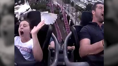 Una usuaria de Facebook, Nicole Ormiston, captó el momento en el que un ave se estrella contra la cabeza de una joven que estaba montada en una montaña rusa. Ocurrió el pasado 27 de julio en el parque temático Movie World de Warner Bros (Australia). El vídeo fue compartido ese mismo día y en poco tiempo se ha hecho viral en redes sociales. Afortunadamente, nadie resultó herido.