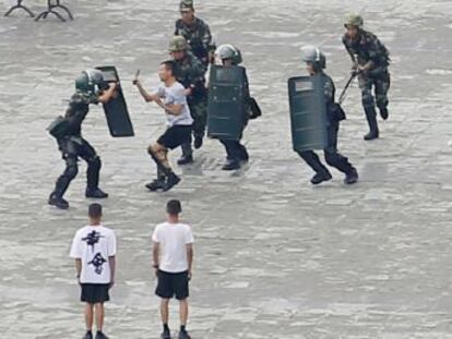 Un apretón de manos entre China y Hong Kong. Esa es la imagen de la bandera que ha colgado el escalador Alain Robert en un rascacielos de la ciudad para pedir su reconciliación. Después de escalar 68 pisos bajo la atenta mirada de policía y viandantes que grababan su hazaña, Robert ha asegurado que este acto ha sido un "mensaje de paz" y que cree que hay "soluciones para este problema". Miles de ciudadanos de Hong Kong llevan desde junio en las calles para protestar contra la adopción de un proyecto de ley que permitiría la extradición de sospechosos a jurisdicciones sin un acuerdo previo. Este viernes, China ha concentrado sus fuerzas en Shenzhen, ciudad fronteriza con Hong Kong, en medio de la escalada de la crisis por las manifestaciones en favor de la democracia en la que Donald Trump espera que Pekín actúe con "humanidad" por el bien de las negociaciones comerciales entre ambas potencias.