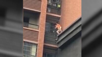 Un vecino de la ciudad de Chagshá, situada en la provincia de Hunan de China, decidió escapar de las llamas bajando por la fachada exterior del edificio el pasado 27 de agosto. Después de que se produjera un incendio en su vivienda, el hombre cogió a su sobrino de cuatro años sobre su espalda y ambos descendieron del octavo al séptimo piso, planta donde fueron rescatados por los servicios de bomberos. Una vez abajo, ambos fueron atendidos por los servicios médicos. Según informa el medio británico Metro, el hombre, que responde al nombre de Mr Peng, fue tratado por quemaduras mientras que su sobrino fue hospitalizado debido a la inhalación de humo.