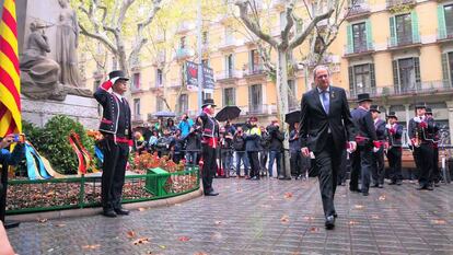 El himno de España suena a todo volumen mientras Torra hace la ofrenda a Casanova