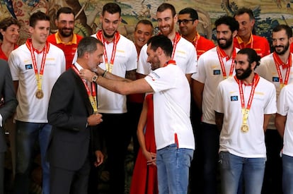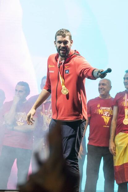 Scariolo es manteado por sus jugadores.Julián RojasMarc Gasol durante la celebración en la plaza de Colón.Julián RojasEl equipo celebra la victoria en la plaza de Colón de Madrid.Bernat Armangue (AP)El autobús con la Selección Española de baloncesto, a su paso por Callao, camino a la Plaza de Colón donde celebran con los aficionados el campeonato del Mundo conseguido en China. Samuel SánchezAmbiente en la Plaza de Colón de Madrid para recibir a los jugadores de la selección española de baloncesto. Sergio Perez (REUTERS)El presidente del Gobierno en funciones Pedro Sánchez recibe la copa de manos del capitán de la selección española de baloncesto Rudy Fernández (derecha), acompañados por el seleccionador nacional Sergio Scariolo (segundo por la derecha) y por el presidente de la Federación Jorge Garbajosa (izquierda), durante la audiencia que ofrece al combinado español, que ayer se proclamó campeona del Mundial de Baloncesto 2019 en Pekín, hoy lunes en el Palacio de la Moncloa. Emilio Naranjo (EFE)Los aficionados esperan la llegada de la selección en la Plaza de Colón, en Madrid.ÓSCAR DEL POZO (AFP)Los reyes Felipe y Letizia reciben en audiencia a la selección española de baloncesto tras imponerse ayer vencedores del Mundial de baloncesto, esta tarde en el Palacio de la Zarzuela. Ballesteros (EFE)El rey Felipe recibe una medalla por parte de los jugadores de la selección española de baloncesto, en el Palacio de la Zarzuela. Ballesteros (EFE)Los jugadores de la selección española de baloncesto a su llegada al aeropuerto de Madrid-Barajas Adolfo Suárez. JAVIER SORIANO (AFP)
