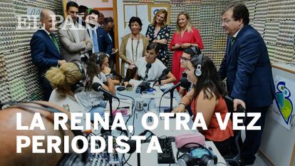 La reina Letizia ha vuelto a ser periodista por un día. La esposa de Felipe VI inauguró hace unos días el curso escolar en el instituto cacereño Vía Dalmacia, en Torrejoncillo, y mostró especial interés por la labor que realizan los alumnos desde la radio escolar. Para ello, la Reina no dudó en sentarse frente a los micrófonos junto a los jóvenes y la profesora y entrar en directo en Radio Alfares, de la Plataforma de Radio Educativa de Extremadura.