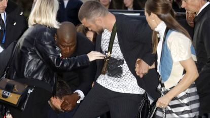 Poco después de bajarse del coche que les había dejado en el Museo del Louvre donde se celebraba el show, un hombre se abalanzó sobre Timberlake y le agarró de la pierna. Tras un breve forcejeo y sin soltar la mano de su esposa, el artista pudo deshacerse de su agresor y saludar con una medio sonrisa sin entender bien qué acababa de ocurrir. Se trata de la segunda anécdota protagoniza por intrusos inesperados en la Semana de la Moda de París, pues el pasado lunes, durante el desfile de Chanel, fue la propia modelo Gigi Hadid quien se atrevió a sacar a una youtuber que se había colado en la pasarela como si fuera una modelo más del show.
