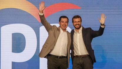 El presidente del PP, Pablo Casado, acudió este sábado a una convención económica del partido en Córdoba junto al presidente de Andalucía, Juan Manuel Moreno Bonilla. Tras la intervención del líder andaluz, Casado subió al escenario y lo saludó pensando que el micrófono estaba cerrado: "Te cambias al Congreso, macho". A lo que Moreno Bonilla le contestó: "No, no, coño, me he enrollado más. Pero tenía que...". Entonces Bonilla animó a Casado: "¡A matarlos ahora!". A lo que este respondió: "Ahora... a matarlos de aburrimiento". El vídeo, publicado este lunes por la Cadena Ser, muestra como mientras los dirigentes populares mantenían la conversación y saludaban, los asistentes al evento los aplaudían.