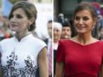 Por la noche, la reina tampoco se guardó nada. Si por el día lució el collar de chatones, por la noche llevó los pendientes a juego, dos grandes diamantes colgantes. Además, sobre la cinta llevó el broche de la flor de lis, una pieza que puede extraerse de la tiara Princesa que le regaló Felipe VI y que estrenó al completo por el 75º cumpleaños de la reina Margarita de Dinamarca. Todo ello sobre un vestido largo en color rosa fucsia a media manga con el cuerpo y la falda completamente bordado de flores plateadas, diseñado por Carolina Herrera.