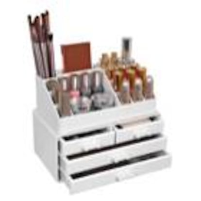 Organizador de maquillaje 2 en 1 Songmics. Los usuarios de Amazon acostumbran a comprar este organizador apilable fabricado en acrílico junto a su espejo. Tiene gran capacidad de almacenaje para maquillaje y cosméticos y también es uno de los más vendidos de la plataforma por 18,99 euros.