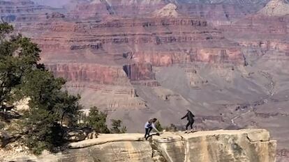 Emily Koford, una joven estadounidense, se salvó por centímetros de caer al vacío mientras hacía una foto en un acantilado del Gran Cañón, en Arizona (Estados Unidos). La joven estaba sacando una instantánea a su madre, cuando al alejarse buscando un mejor encuadre se acercó al borde del precipicio y resbaló. Por fortuna, la turista logró rápidamente recuperar el equilibrio apoyando una mano en el suelo. El incidente tuvo lugar a finales de octubre, según han informado medios locales. “Fue realmente aterrador. Tan pronto como supe que estaba bien, me enojé mucho por lo que había hecho”, ha explicado la madre de la joven, que justo antes había avisado a su hija de que no se acercase tanto al borde del acantilado.