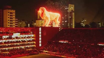 Un ‘león en llamas’ irrumpe en la inauguración del estadio del Estudiantes de La Plata