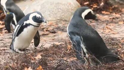 Los dos machos dispuestos a todo para tener un polluelo son de la especie africana de El Cabo (Spheniscus demersus), que está en peligro de extinción, según la Unión Internacional para la Conservación de la Naturaleza. Tienen la cara negra, con la parte superior blanca y manchas rosadas sobre los ojos para protegerse del calor del sol, y en el zoo esperan “que consigan su objetivo porque estamos en plena temporada de cría y ya han nacido los primeros pollos”, según Marc Belt, uno de los cuidadores.
