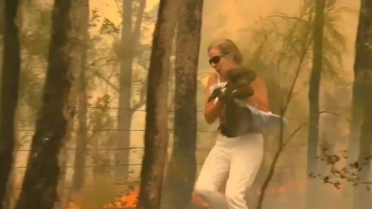 El dramático rescate de un koala entre las llamas de un incendio forestal