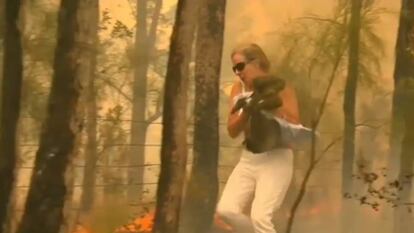 Este martes han sido los koalas, animales emblemáticos de las antípodas, los que han provocado que el mundo dirija su mirada a ese punto del planeta. Las dramáticas imágenes del rescate in extremis de un ejemplar han provocado una oleada de solidaridad y donaciones que ya suman más de medio millón de euros, informa Efe. Toni Doherty, una vecina de la localidad de Port Macquarie, a 450 kilómetros de Sídney, se adentró a la carrera entre las llamas para salvar la vida de uno de estos marsupiales. La mujer, que usó su propia ropa para cubrir al animal y se quedó en sujetador, lo arrancó de las llamas y lo roció con agua para aliviar sus quemaduras.