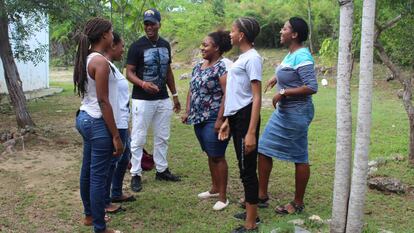 Conceptos como feminismo o violencia de género tardan más en penetrar en el entorno rural. Cinco jóvenes se reúnen en la sede de la Confederación Nacional de Mujeres Campesinas (Conamuca) en la Comunidad de Dios Dirá, a algo más de una hora de Santo Domingo, para explicar cómo ven ellos las agresiones machistas en sus vecindarios. “En mi comunidad una chica dejó a su novio porque le daba golpe tras golpe. Él compró un cuchillo para matarla, fue a por ella y le dio diez puñaladas. Muchas veces la gente ni se mete a ayudar, solo están ahí grabando con el móvil. Te digo una cosa, yo creo que todos los que son violentos con las mujeres es porque ya han tenido malas experiencias con alguna y están desconfiados”, explica Yasser Arias, de 23 años. “La violencia no tiene justificación”, le contesta Daniela Janil, de 28.