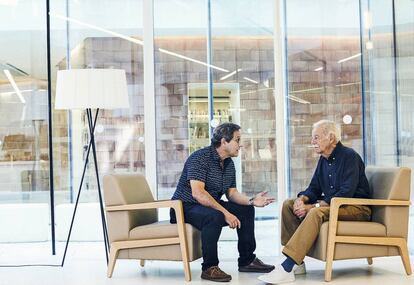 Escritores y sus actores-narradores. Ordesa estaba en la mesilla de noche de Israel Elejalde tras la lectura de unas cuantas páginas porque le había tocado muy hondo. Sus padres habían muerto hacía poco. Cuando de Penguin Random House lo llamaron para proponerle la lectura de esa novela de Manuel Vilas, el primer impulso fue decir no, pero confiesa: “Me impliqué sin querer. La voz de Vilas allí es tan poderosa que es difícil no entrar. Era como si hablara yo mismo”. Escritor y actor comentan en el bar Manolo de Madrid su satisfacción por el resultado. “Poner voz a un libro conocido es difícil de aceptar porque hay una especie de intromisión; por un lado, el autor ha creado una voz que a su vez suena en la cabeza de cada lector de manera diferente”, reconoce Elejalde, que también ha grabado obras de Philip Roth, Javier Marías y Benito Pérez Galdós.