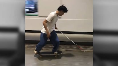 Ryusei Ouchi es un skater japonés de 19 años cuyos vídeos patinando se han vuelto viral en las redes sociales. La excepcionalidad de su estilo no está en sus movimientos, sino en el bastón con el que los acompaña: el joven es invidente, pero eso no le impide desplazarse con soltura y ejecutar distintos trucos sobre su tabla. Las publicaciones que ha compartido acumulan cientos de visualizaciones en Instagram (@kid_m.c) y su cuenta personal tiene más de 20.000 seguidores.