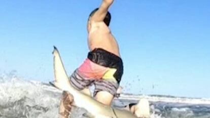 Encima de la tabla, Chandler Moore, un niño de siete años que surfea tranquilamente en una playa de Florida. En el agua, un tiburón que se acerca sigilosamente. El joven se da cuenta de la presencia del animal, pero poco puede hacer para evitarlo. El resultado: caída al agua y un susto tremendo. El fortuito encontronazo fue grabado el pasado sábado gracias a una cámara GoPro instalada en la tabla. La madre de Chandler, tras la grabación, fue la que advirtió de que ese "pez" que había visto su hijo era en realidad un escualo.