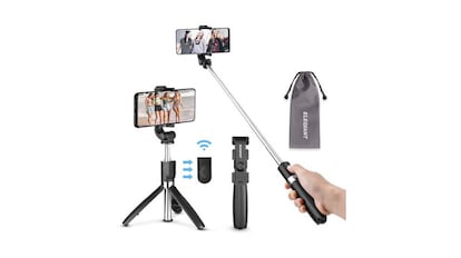 Un gran accesorio para convertir el móvil en una potente cámara fotográfica. Además de ayudar a capturar los mejores autorretratos gracias a su extensión de hasta 42 cm, dispone de un trípode en el mango para poder colocarlo de pie y estabilizar cualquier captura. En ambos casos se puede aprovechar su práctico soporte giratorio de 360 grados, que permite sostener cualquier teléfono con medidas entre 56 y 89 mm. Además, se puede conectar mediante Bluetooth al smartphone para controlar las capturas desde su mando a distancia, incluido en el mango.