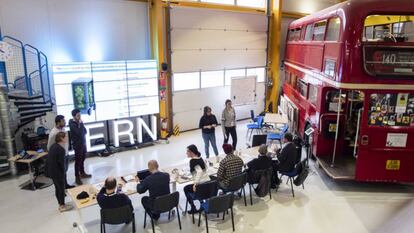 Quién sabe si alguno de los estudiantes que ocuparon este laboratorio durante la segunda semana de diciembre será el que tenga en su mente la próxima gran revolución. Cuarenta alumnos viajaron desde Barcelona hasta Ginebra con un objetivo: conseguir que la vida en las ciudades sea mejor. Divididos en ocho equipos, estudiantes de la Universidad Politécnica (UPC), el Instituto Europeo de Diseño (IED) y Esade (que ha invitado a EL PAÍS a conocer el proyecto), participaron en un reto para lograr más accesibilidad, menos contaminación, mayor reacción ante desastres naturales o mejor gestión de los residuos. Ingeniería, diseño y negocio que dieron lugar a prototipos que construyeron en el propio CERN. (Mira aquí la fotogalería con las soluciones propuestas).