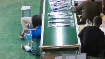 Un niño queda atrapado en la cinta transportadora de una fábrica en China