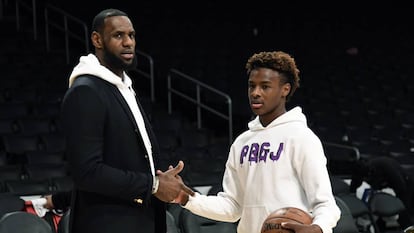 La determinación de uno de los mejores jugadores de la historia de la NBA nace de la revancha con su biografía. LeBron Raymone James se abrió paso en el mundo compitiendo contra el destino, se agigantó en su oficio hasta hacerse leyenda y ahora lucha, a la vez, por restituir el prestigio archivado de los Lakers y por ejercer de padre ejemplar, el padre que él no tuvo, con sus tres hijos. Sobre todo, por proyección mediática, con el primogénito, de 15 años, que al nacer heredó su nombre y al crecer ya acapara parte de su cuota de celebridad. LeBron Bronny júnior se ha convertido en el adolescente más popular de Estados Unidos, solo juega en el equipo de su instituto, el Sierra Canyon de Chatsworth, un barrio de Los Ángeles, pero su presencia y notoriedad bastan para que se agoten las mil localidades del pabellón escolar en cada uno de sus partidos y para que decenas de cámaras de televisión acudan a captar todos sus movimientos y los de su ilustre progenitor y fan incondicional a pie de pista.