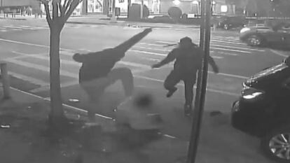 Dos hombres de 60 y 29 años fueron agredidos violentamente en el barrio neoyorquino de El Bronx (Estados Unidos) en la noche de Navidad por unos ladrones que obtuvieron un raquítico botín: un dólar. Como puede verse en el vídeo, sobre la 1.25 de la madrugada del martes, un grupo de atacantes propinó a ambos una brutal paliza, capturada por una cámara de seguridad. Uno de los agresores agarró por la espalda y empujó al suelo a la víctima de mayor edad, momento que los asaltantes aprovecharon para pisotearle, darle varios puñetazos e incluso arrojar un contenedor de basura sobre su cuerpo. El hombre tuvo que ser trasladado al Hospital Lincoln por la gravedad de sus heridas. Según la policía de Nueva York, la otra víctima de los atacantes, todavía no identificados, rechazó recibir ayuda médica.