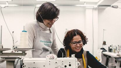 Cárdenas mutó ese gen maternal que la caracteriza para ser la jefa. Creó Ellas lo Bordan, una empresa textil que emplea a 16 madres en riesgo de exclusión social. Muchas no habían usado nunca una máquina de coser. Las primeras que llegaron ya llevan dos años trabajando. La empresa les proporciona un salario de 985 euros, un contrato de tres años y una formación para que salgan a continuar su trayectoria laboral. La fundadora huye de la caridad y del paternalismo. “Es una oportunidad profesional”, insiste, y recuerda que hay meses que cosen 3.500 cojines para Ikea, empresa de la que son proveedores. “Trabajar con una firma como esta genera efecto llamada”, afirma. No quiere olvidar que poco a poco van creando producción propia y que también hay otras pequeñas empresas que les confían sus pedidos. Están creciendo, lo que no va a hacer que se pierda el ambiente familiar, la red de afectos y el poner la conciliación en un lugar primordial.