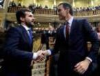 Después de Casado, Santiago Abascal pudo exponer su discurso de odio durante cinco minutos en el silencio de la cámara, sin que los revoltosos habituales se movieran. Los dos se atribuyeron la defensa de la figura de Felipe VI. Abascal, respondido por los suyos con gritos de: “Viva el Rey”. Esa apropiación por parte de la extrema derecha de quien encarna la Jefatura del Estado español, no es una buena noticia para la Monarquía parlamentaria. Es una noticia mucho peor que las críticas de partidos minoritarios con los que este sistema ha convivido durante 40 años. Pablo Iglesias lo señaló y lo clavó Aitor Esteban: “El Rey le encargó a Sánchez formar Gobierno”, les espetó a sus defensores de cámara.