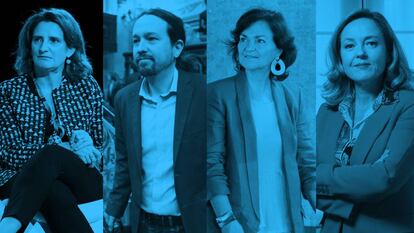 El nuevo Gobierno de España contará por primera vez con cuatro vicepresidencias: Carmen Calvo será la ministra de Presidencia y relaciones con las Cortes y memoria democrática; Nadia Calviño, de asuntos económicos y transformación digital; Teresa Ribera, vicepresidenta para la transición ecológica y el reto demográfico y Pablo Iglesias, de derechos sociales y agenda 2030.