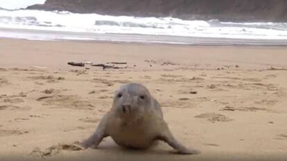 La visita de una foca despistada en la playa de la Zurriola, en San Sebastián, ha sido la imagen más sorprendente que ha dejado el temporal en el norte del país este viernes. El animal se había desorientado por el fuerte oleaje. El motivo de la visita de la foca a las costas vascas puede deberse a que necesitara descansar tras un largo viaje desde Gran Bretaña, según ha confirmado Ambar, la sociedad para el estudio y la conservación de la fauna marina, a El Diario Vasco.