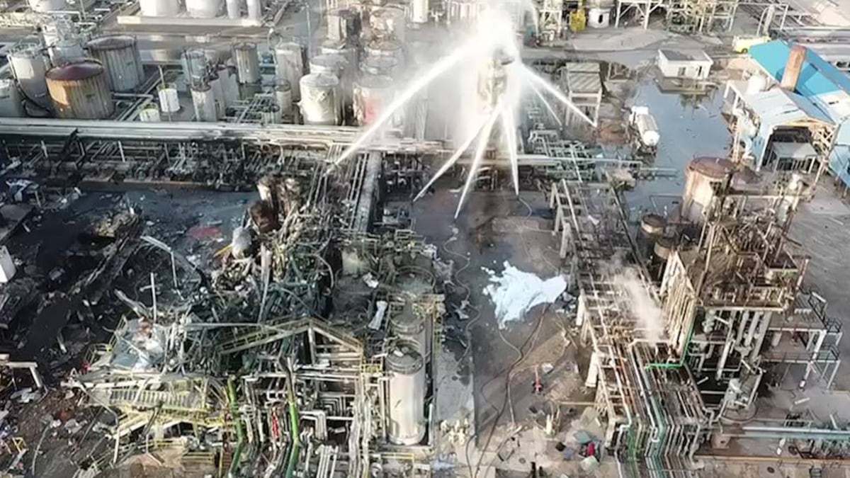 Los servicios de emergencias difunden imágenes aéreas de la planta afectada por la explosión