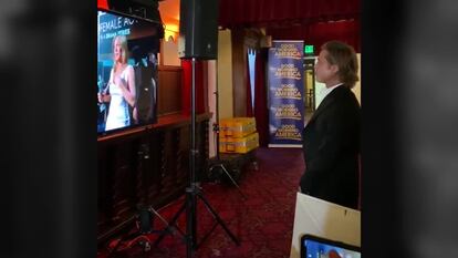 Fue en ese momento, al recoger ella el premio, cuando se produjo una imagen que rápidamente se viralizó en las redes sociales: Pitt, en el backstage, siguiendo con atención la retransmisión en televisión del discurso de su expareja, con quien desde el año 2000 al 2005 compartió uno de los matrimonios más populares de Hollywood.