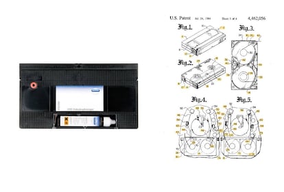 En la foto de la izquierda, un modelo de Panasonic. En la patente, la versión registrada por Philips en 1974, que permitía "grabar por los dos lados".
