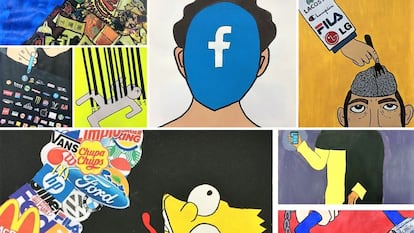 Metáforas visualesIES ‘Félix Rodríguez de la Fuente’. Sevilla.Desde la compra compulsiva o la fascinación por las marcas, hasta las falsas promesas que nos vende la industria cosmética. Pero también hay quien ha visto en el negocio del fútbol una forma de consumo, expresando su protesta contra las grandes cifras económicas que éste mueve.Algunos alumnos, han querido llamar la atención sobre el consumo adictivo de los teléfonos móviles y las redes sociales, reflexionando sobre la dependencia que éstos crean.