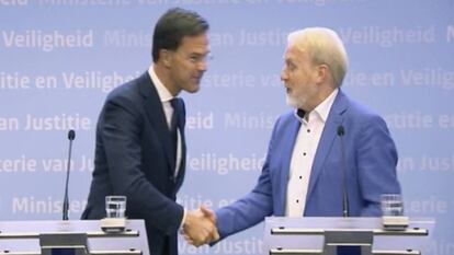 El primer ministro de los Países Bajos da la mano en rueda de prensa tras pedir no hacerlo por el coronavirus