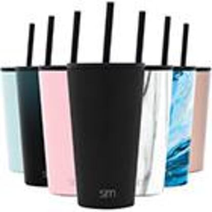 Vaso termo de Simple Modern. Por si prefieres la opción en forma de vaso: también con dos tapas tanto para beber con su sistema abatible como con pajita. Disponible en una infinidad de colores, cinco tamaños diferentes y con más de 7.000 valoraciones.