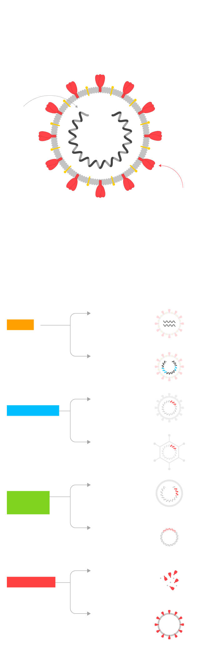 Parten del propio coronavirus, pero modificándolo para atenuar su acción infecciosa o anularla por completo.