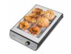 Con un diseño plano y acabados en acero inoxidable, está equipado con tres resistencias halógenas de cuarzo que distribuyen el calor de forma uniforme y eficiente, evitando así que unas zonas queden más hechas que otras o lleguen a quemarse.