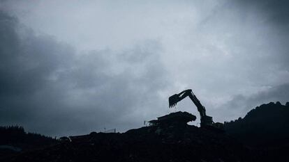 Llueve con fuerza hasta convertir el suelo en un fango espeso, hecho de tierra y todo tipo de residuos. Los restos de un todoterreno Land Rover han quedado reducidos a un revoltijo de chatarra del tamaño de un sillón. En el borde mismo de un talud, como un vigía del abismo, el operario Porfirio, enfundado hasta las cejas en un mono impermeable de color azul, aguanta el chaparrón a pie firme. Su función es solo esa, hacer de poste humano para que los conductores de los camiones y las excavadores no se precipiten al vacío. Desde un poco más abajo arranca la grieta en forma de tobogán que el vertido fue abriendo hasta desembocar en la autopista. Al otro lado, de pie en la puerta del caserío Oletxe, su propietario, Agustín Saiz, explica que no se dio cuenta del alud que se les venía encima.