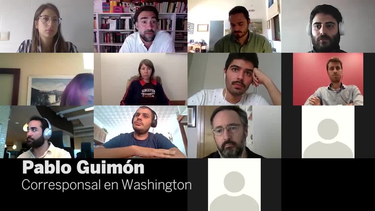 EL PAÍS cuenta con una delegación en Washigton formada por cuatro periodistas entre los que se encuentra Guimón, anteriormente corresponsal en Reino Unido. La cobertura del país se completa con otros dos profesionales, uno en Los Ángeles y otro en Nueva York. "Es un país abrumador por su capacidad de generar noticias y de marcar las tendencias en el mundo", reconoció Guimón en el encuentro. Aunque la política supone el 60% de las noticias que generan desde esta delegación, las últimas semanas las han vivido especialmente centrados en el avance del coronavirus y las protestas raciales derivadas de la muerte de George Floyd.